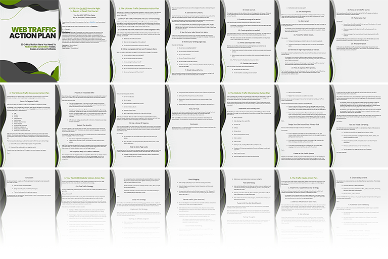 Have you ever wondered what the six-figure marketers do to get traffic that you don’t do? You’ll find out inside these action plans! Now you too can put the most profitable traffic and conversion strategies to work for you starting today!